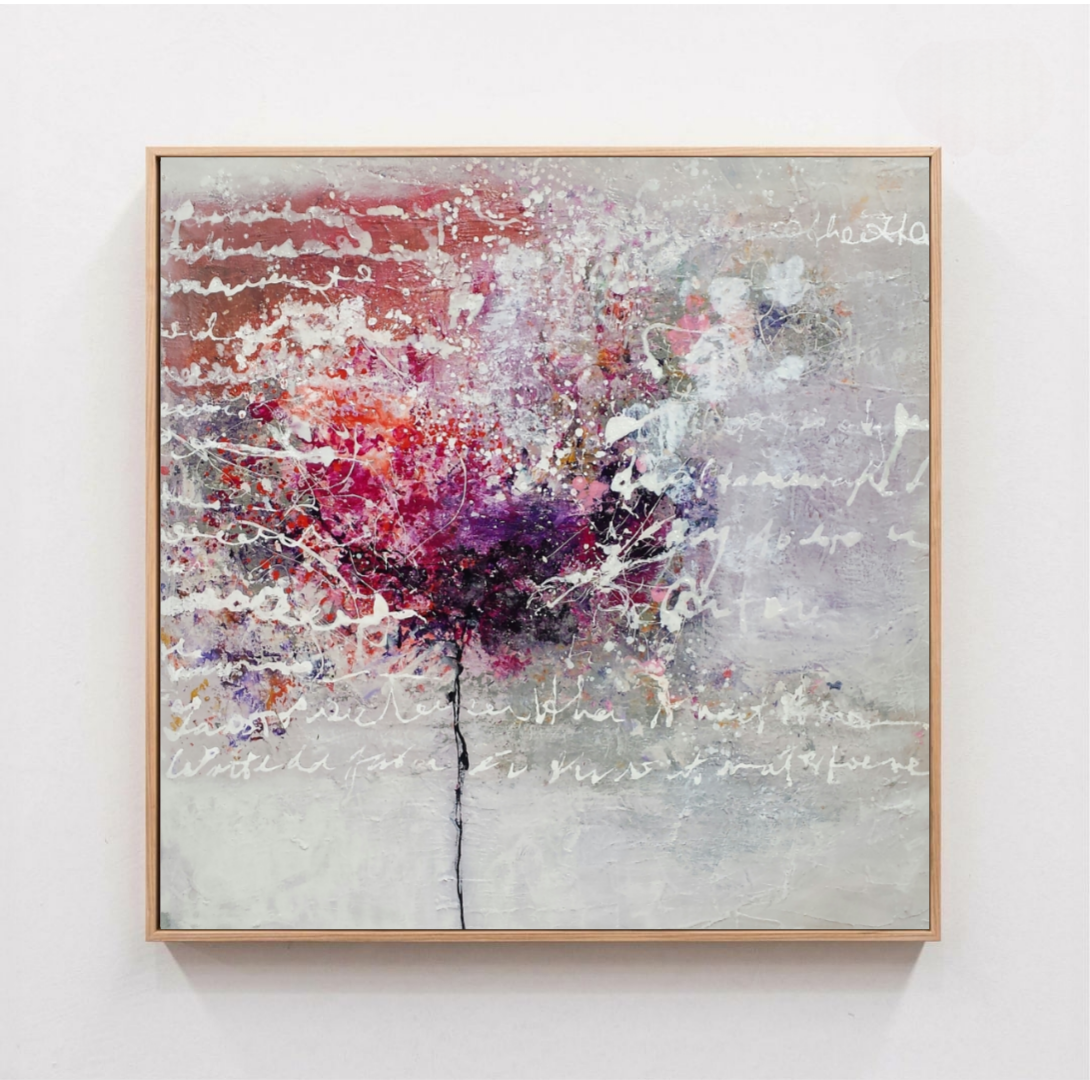 Abstract art work, Smokey pinks, purples, creams and soft hand written messages. Inspired by old love letters written in France.