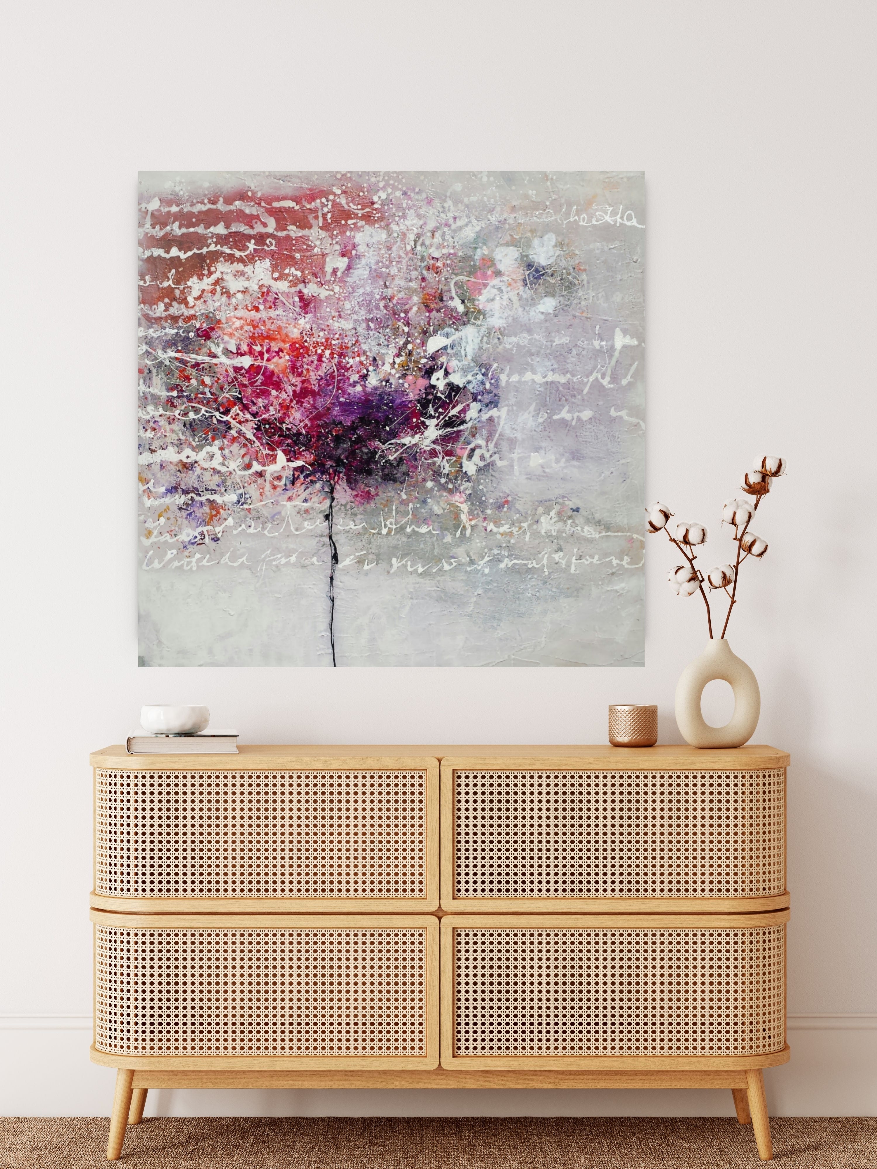 A very soft but dramatic piece of work. Explosive in beauty. A gorgeouse and timeless abstract canvas art.