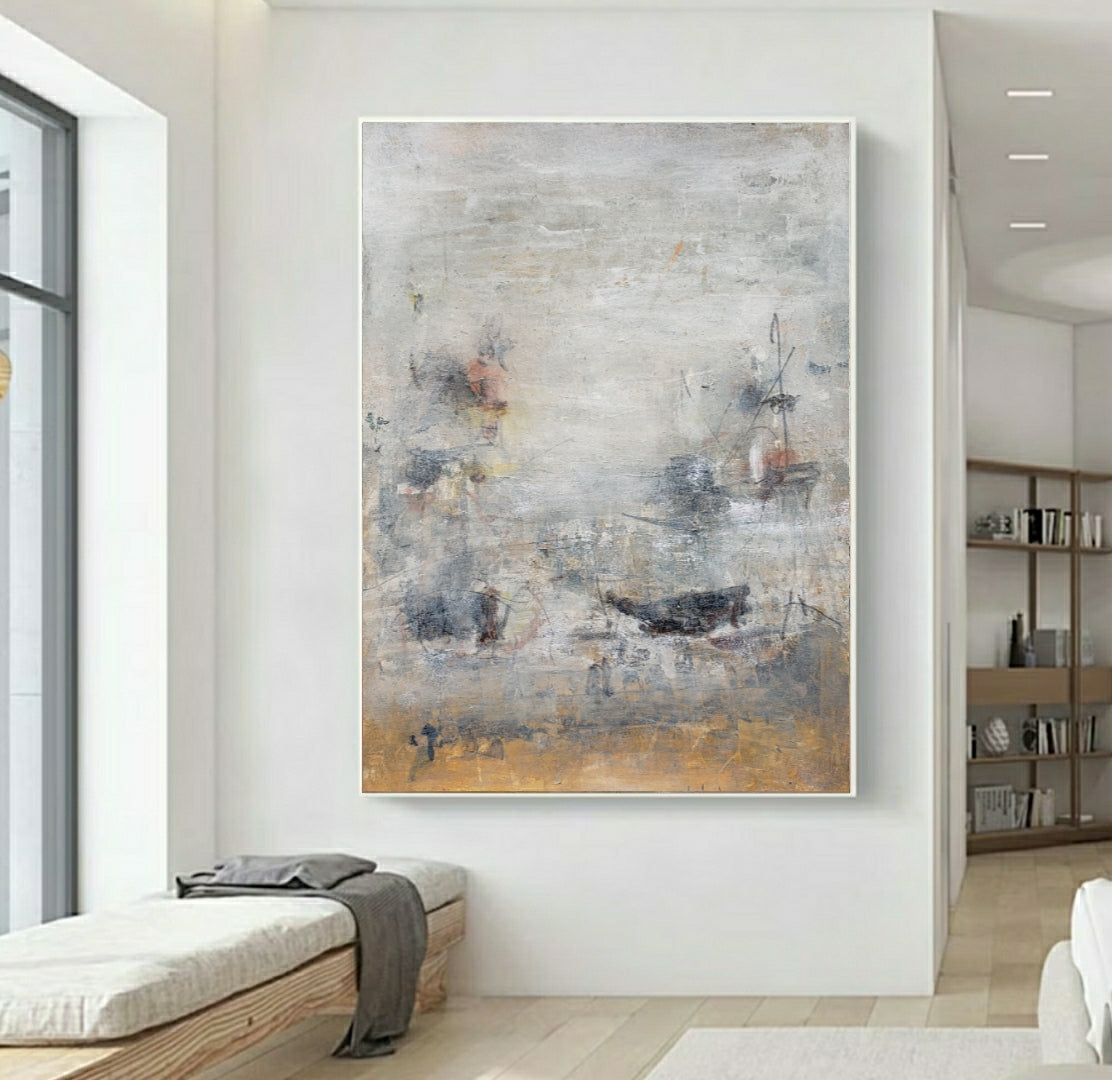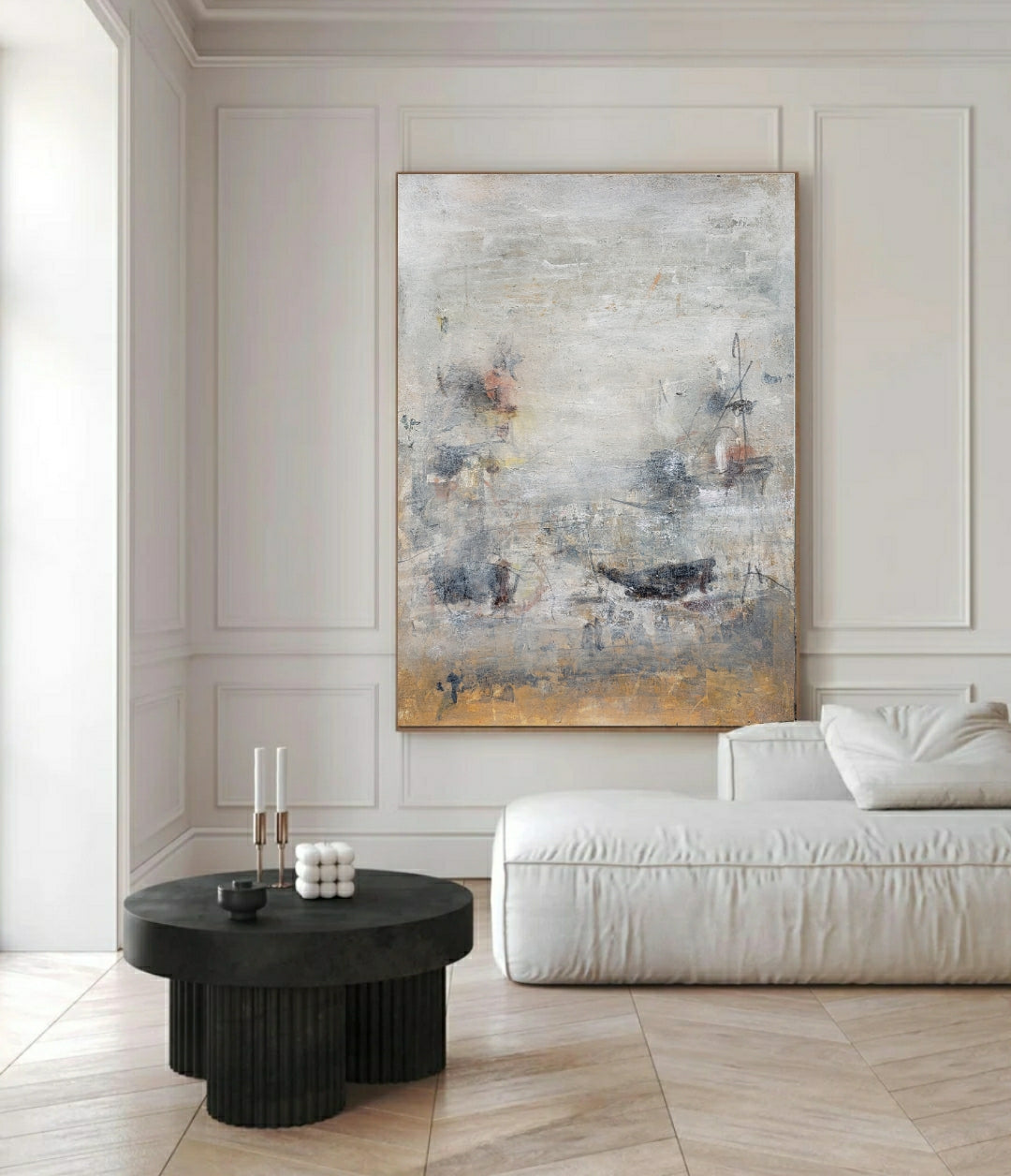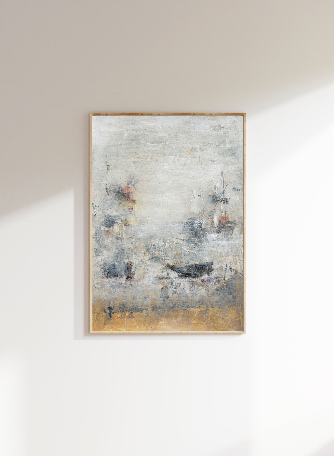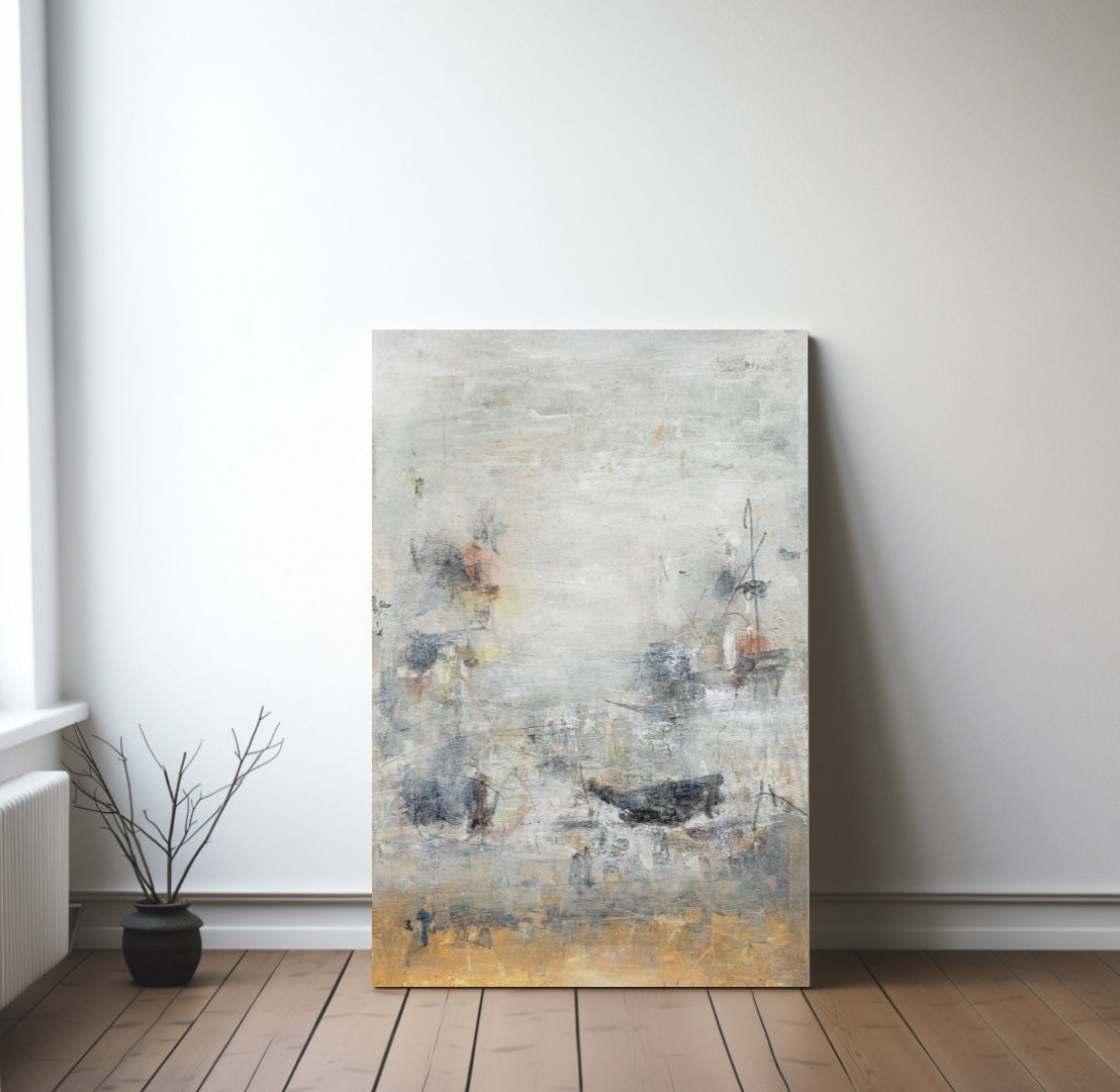 Add a touch of elegance and sophistication to your space The Tango In Pininusla canvas print. This stunning abstract canvas print features soft muted colours, beautifully capturing a the boats off Japans coast. Printed on quality archival canvas with vibrant, fade-resistant inks, this large canvas art print is sure to stand the test of time. capturing the intricate detail of the layers and  textures.