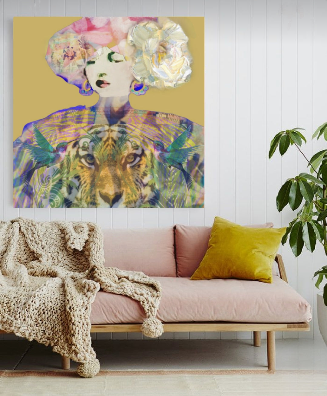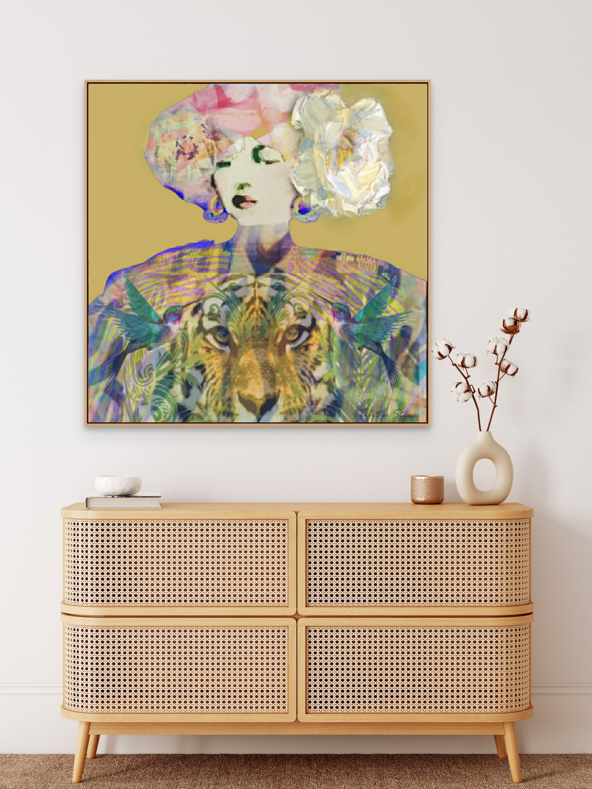 Introducing our stunning "Prowess Spirit" Canvas Print, featuring a captivating lioness goddess with rose in her hair. This exquisite canvas print captures the strength and grace of the lioness, symbolising power and femininity. The vibrant colours and intricate details make this piece a true work of art, perfect for adding a touch of beauty and inspiration to any space. Add a touch of majestic elegance to your surroundings with our Prowess Spirit Canvas Print.
