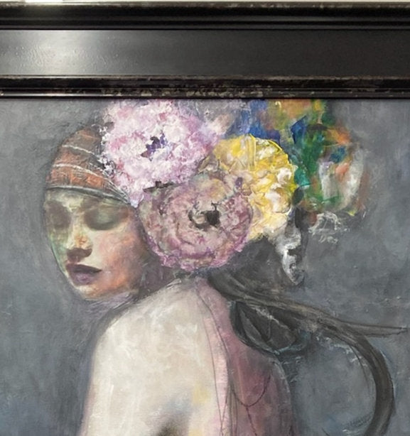 Original large framed painting. Belle is painted using acrylic on stretched canvas ready to hang. Framed in an exquisite Italian wood frame from Italy.
